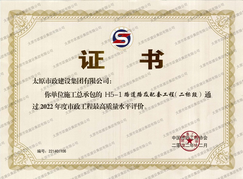 資質證書 營業(yè)執(zhí)照 2022年度市政工程最高質量水平評價_H5-1路道路及配套工程(二標段) 2022年度工程建設誠信典型企業(yè) 中國施工企業(yè)管理協(xié)會_AAA級企業(yè)信用等級 2022年度全國市政工程建設優(yōu)秀質量管理小組三等獎_''核動力QC小組”提高瀝青路面壓實度合格率”